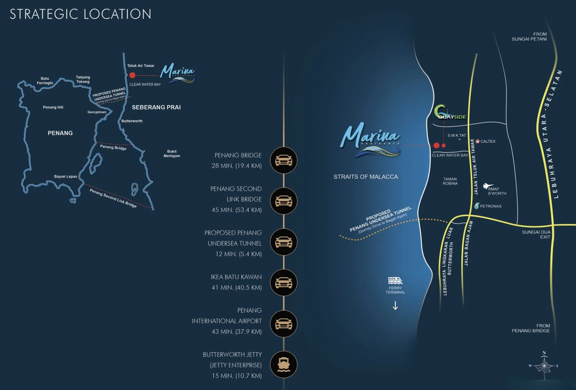 Marina Residence is a freehold high-rise development in Teluk Air Tawar, Butterworth, spanning 11 acres of sea-facing land. It features three 12-storey blocks with 404 resort-style homes, offering spacious units (1,208–1,593 sq. ft.) in a low-density setting. Priced from RM546,000, it is set for completion by the end of 2026. Conveniently located near Robina EcoPark, it provides easy access to Penang Sentral (10 km) and Penang Bridge (20-minute drive). Designed for resort-style living, Marina Residence offers open spaces, modern amenities, and a tranquil environment.